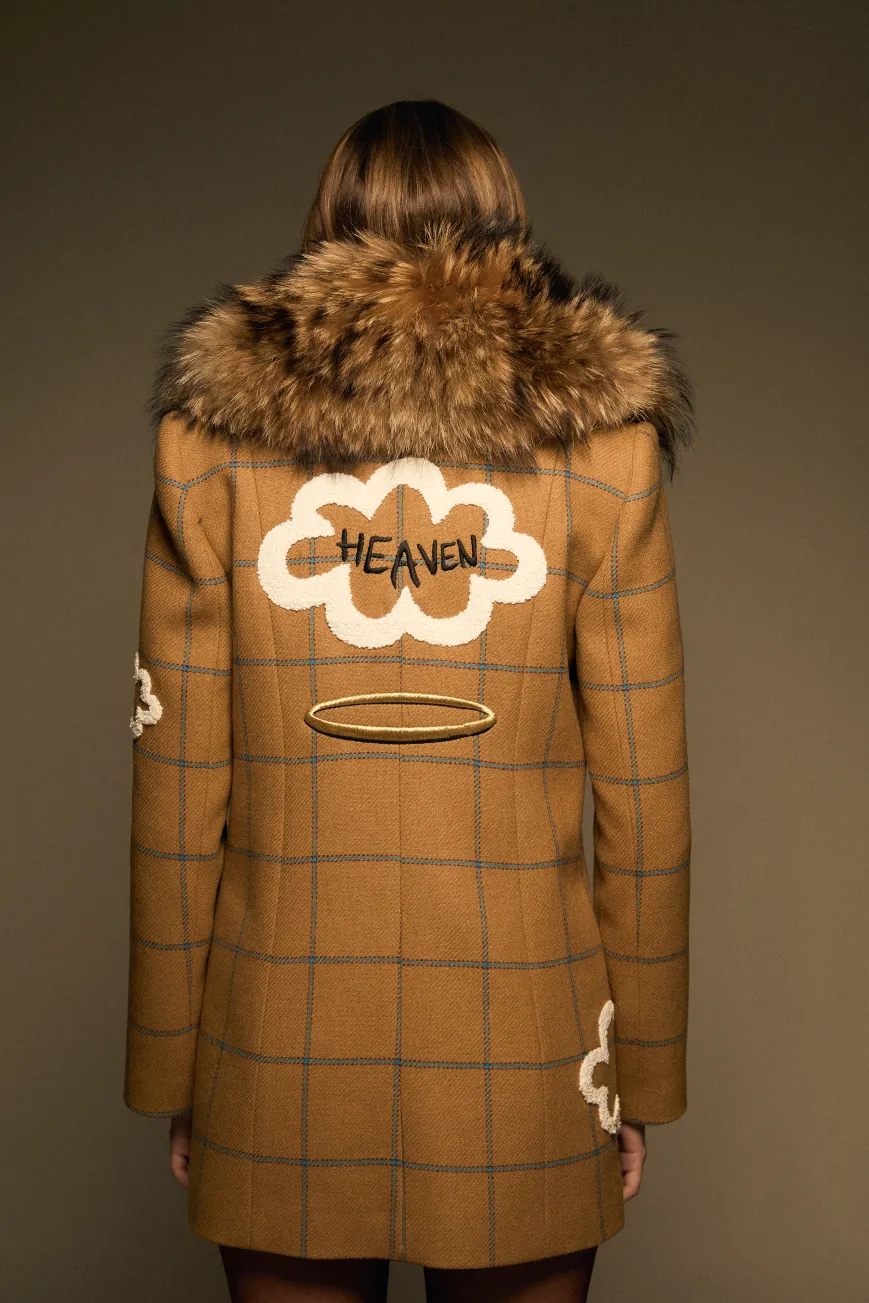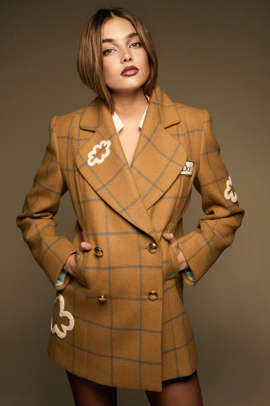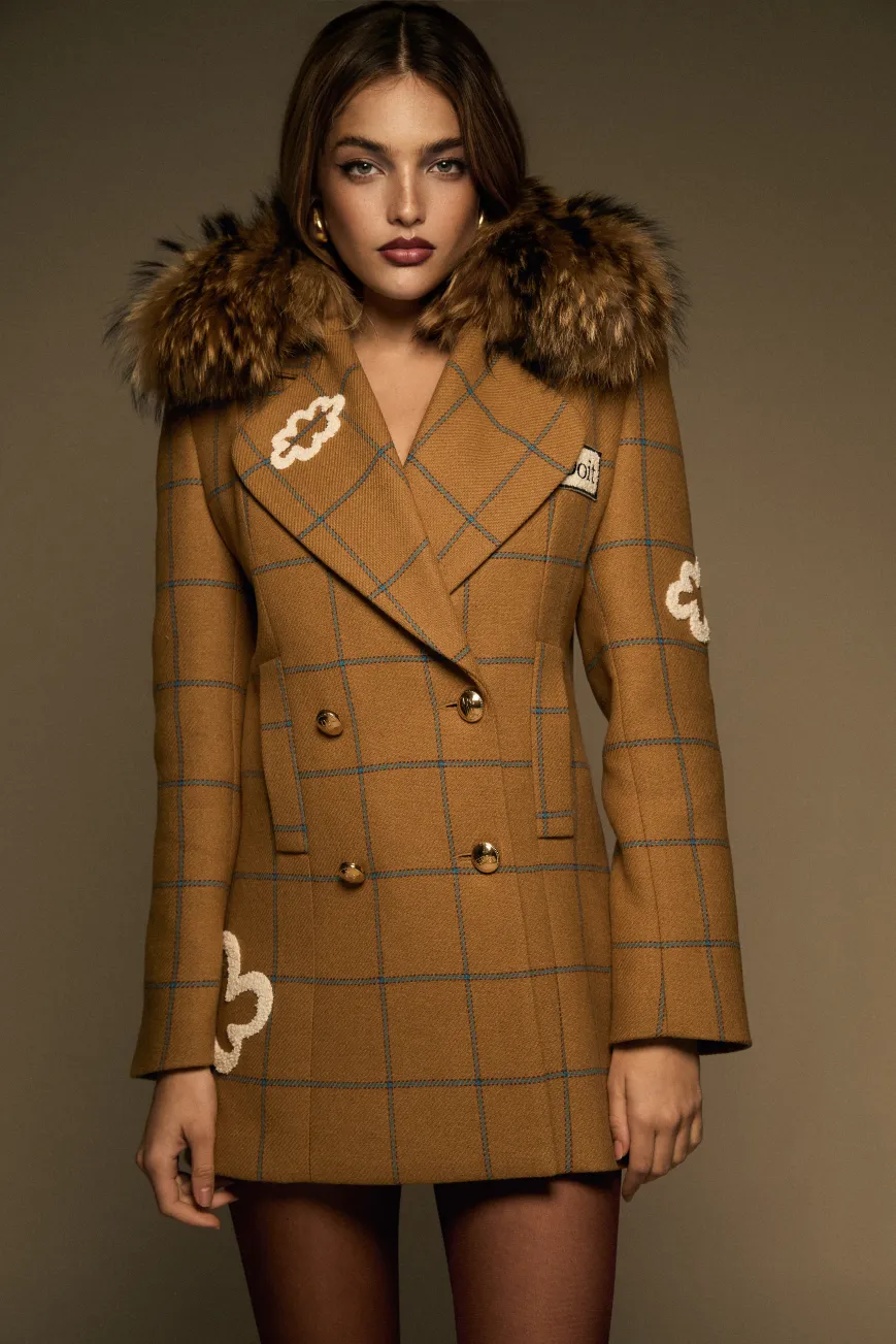Nubes abrigo es una versátil prenda de invierno que fusiona una estructura entallada y recta con encantadores bordados. Confeccionado en un cálido cuadro camel con azul, cuenta con un espectacular cuello de piel natural que puedes quitar y poner cuando quieras. Con bolsillos delanteros y botones cruzados esta silueta equilibra la sofisticación vintage con la comodidad acogedora. Ideal para combinar con el set bandida y lucir un look chic en los días fríos. El fit de la prenda es medio.