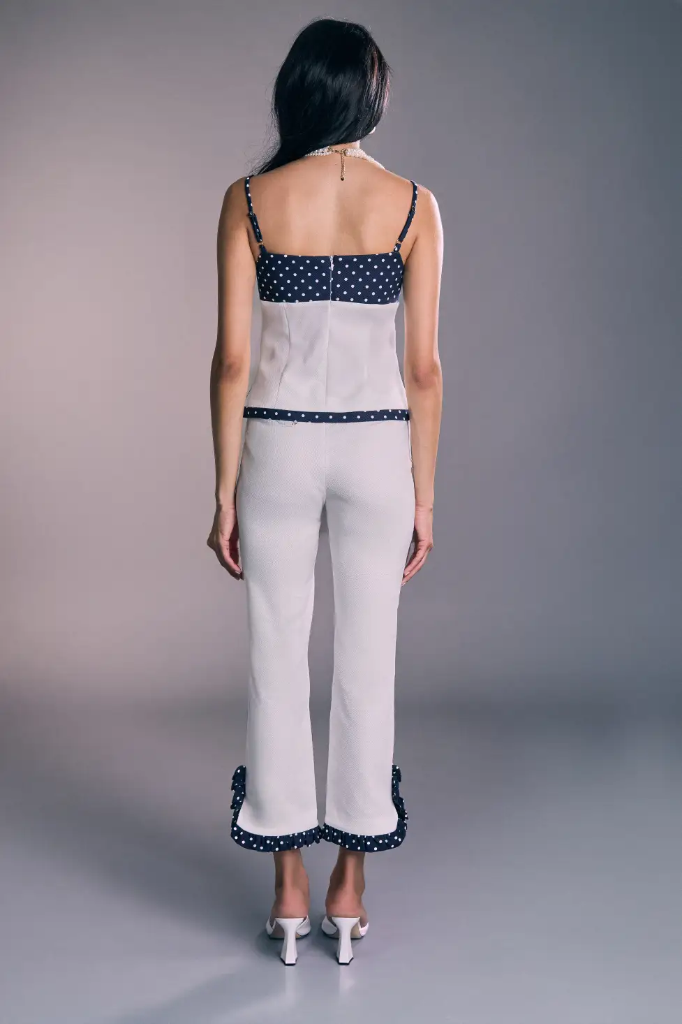 El Brigitte Bardot Pantalón es un pantalón de mujer elegante con silueta recta y largo al tobillo que estiliza visualmente la figura. Su diseño estructurado incorpora detalles en contraste y acabado refinado, convirtiéndolo en una pieza versátil para looks de sastrería femenina. Perfecto para llevar con la blazer a juego o combinar con tops minimalistas, es una opción ideal para estilismos sofisticados de primavera verano.